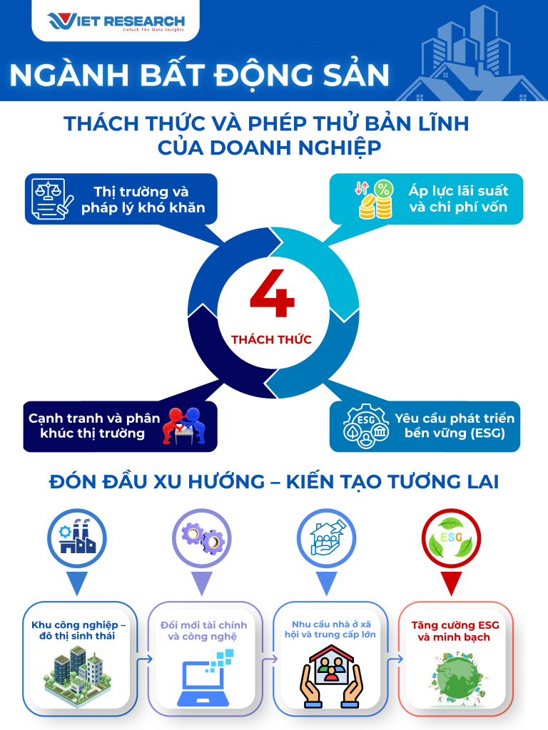 Dù đóng góp giá trị lớn, ngành Bất động sản cũng đang đối mặt nhiều thách thức gay gắt. Theo khảo sát và nghiên cứu của Viet Research từ các doanh nghiệp trong Top 10 Doanh nghiệp tạo giá trị hàng đầu Việt Nam 2025 – Ngành Bất động sản, có 4 thách thức nổi bật được nhận diện.