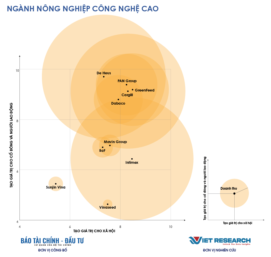 Trong khuôn khổ Chương trình Nghiên cứu toàn quốc về các Doanh nghiệp tạo giá trị hàng đầu Việt Nam, Viet Research phối hợp với Báo Tài chính – Đầu tư (Bộ Tài chính) công bố Top 10 Doanh nghiệp tạo giá trị hàng đầu Việt Nam 2025 – Ngành Nông nghiệp công nghệ cao. Đây là những doanh nghiệp tiên phong trong việc tạo dựng giá trị cho nền kinh tế và xã hội, thể hiện qua:quy mô và tốc độ tăng trưởng; lợi nhuận và đóng góp cho ngân sách; môi trường, chính sách và phúc lợi lao động; cam kết về ESG và đổi mới sáng tạo.
