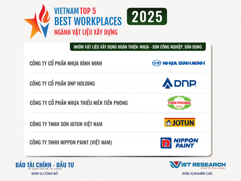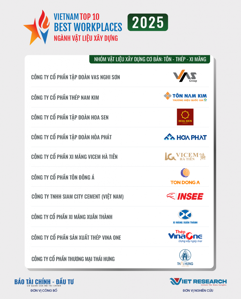 CÔNG BỐ TOP 10 NƠI LÀM VIỆC TỐT NHẤT VIỆT NAM 2025 – NGÀNH VẬT LIỆU XÂY DỰNG