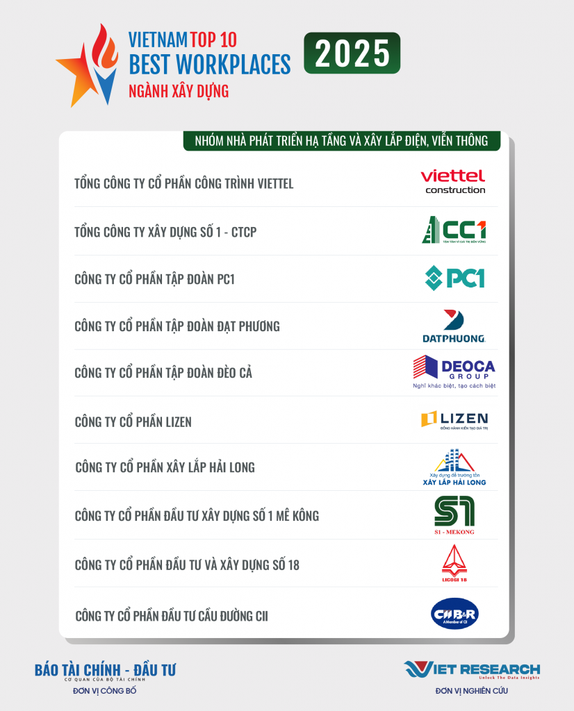 Năm 2025 là năm thứ tư liên tiếp Chương trình Top 10 Nơi làm việc tốt nhất Việt Nam – VBW10 trong các ngành kinh tế trọng điểm được Viet Research và Báo Tài chính – Đầu tư (Bộ Tài chính) nghiên cứu và công bố. Đây là chương trình thường niên nhằm tìm kiếm và tôn vinh những doanh nghiệp có môi trường làm việc tốt nhất trong các ngành, các doanh nghiệp tuyển dụng hàng đầu Việt Nam, những thành tố quan trọng tạo cơ hội việc làm, góp phần chung vào sự phát triển bền vững của đất nước và nền kinh tế trong giai đoạn mới. Những doanh nghiệp xuất sắc góp mặt trong VBW10 đóng vai trò quan trọng trong việc định hình và nâng cao chất lượng thị trường lao động quốc gia, đóng vai trò dẫn dắt trong việc thúc đẩy trách nhiệm xã hội và phát triển bền vững, tạo ra giá trị lâu dài cho các cổ đông, người lao động, nền kinh tế và xã hội.
