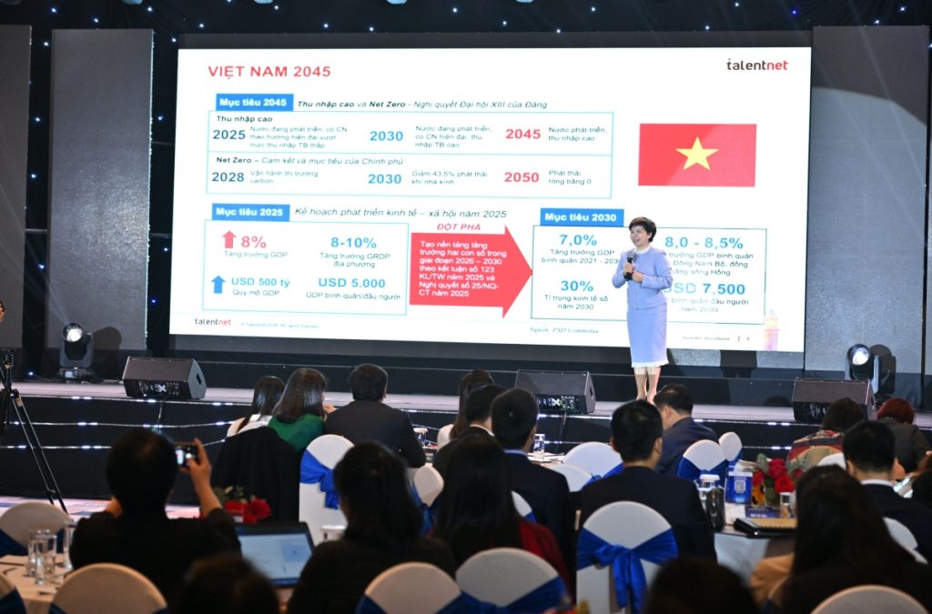 Bà Đặng Thúy Hà, Giám đốc Khu vực miền Bắc, Cố vấn Chiến lược Doanh nghiệp Talentnet phát biểu tại chương trình