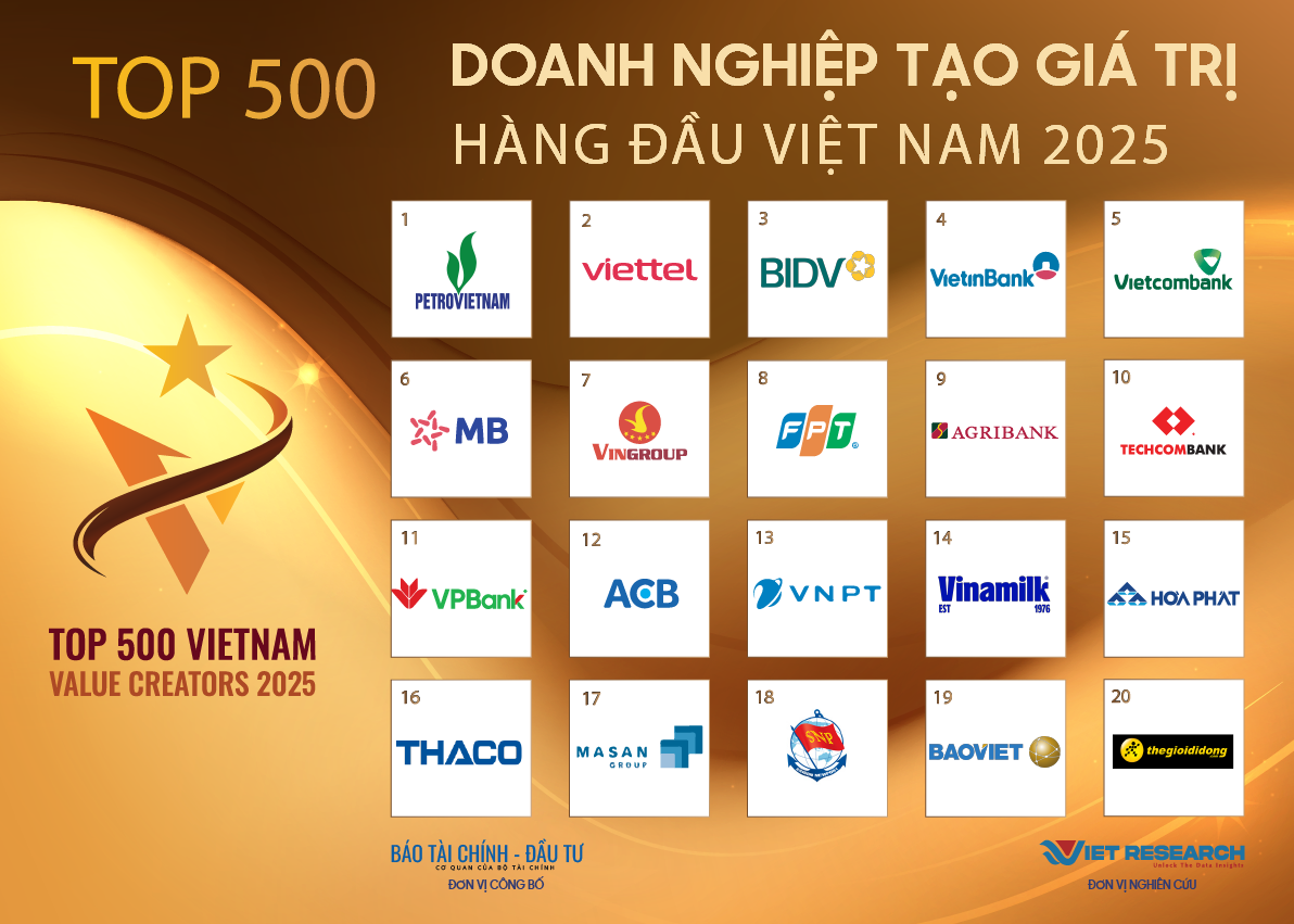 Trong khuôn khổ Chương trình Nghiên cứu toàn quốc về các Doanh nghiệp tạo giá trị hàng đầu Việt Nam, Viet Research phối hợp với Báo Tài chính – Đầu tư (Bộ Tài chính) công bố Top 10 Ngân hàng tạo giá trị hàng đầu Việt Nam 2025.