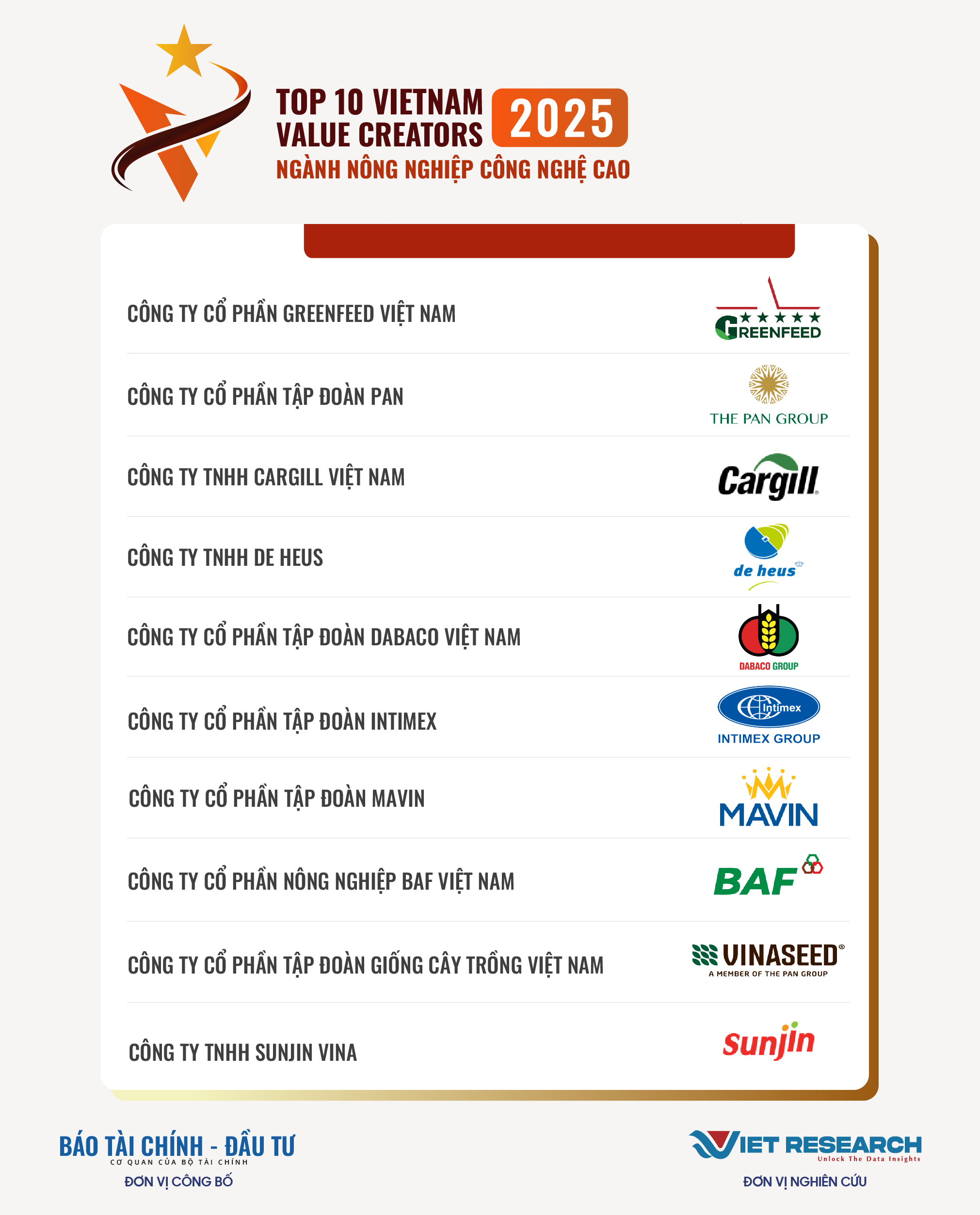 Viet Research phối hợp với Báo Tài chính – Đầu tư (Bộ Tài chính) công bố Top 10 Doanh nghiệp tạo giá trị hàng đầu Việt Nam 2025 – Ngành Nông nghiệp công nghệ cao.