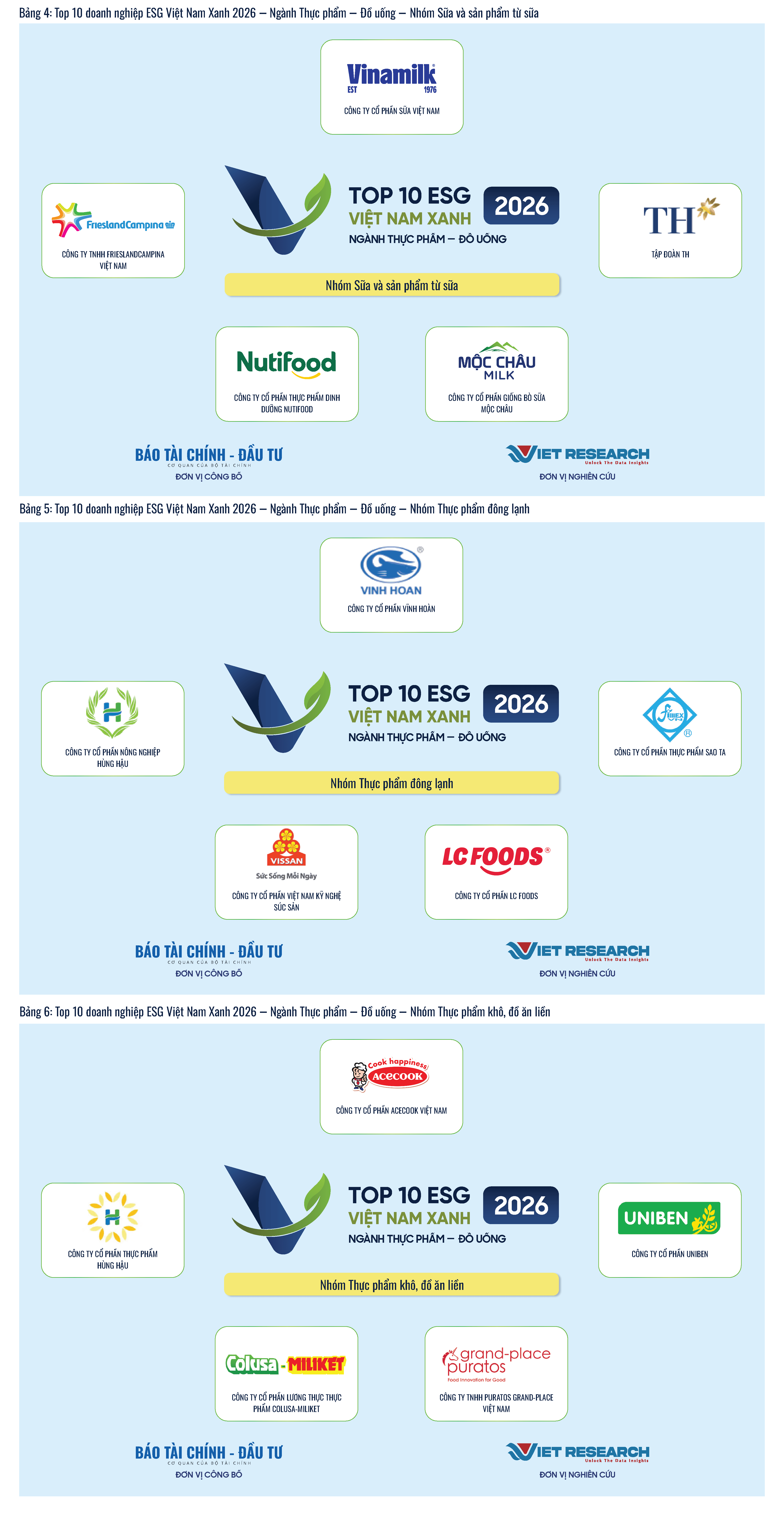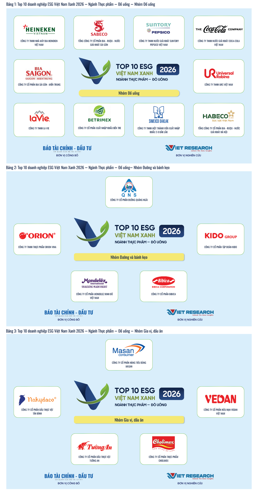 CÔNG BỐ TOP 10 DOANH NGHIỆP ESG VIỆT NAM XANH 2026 – NGÀNH THỰC PHẨM – ĐỒ UỐNG