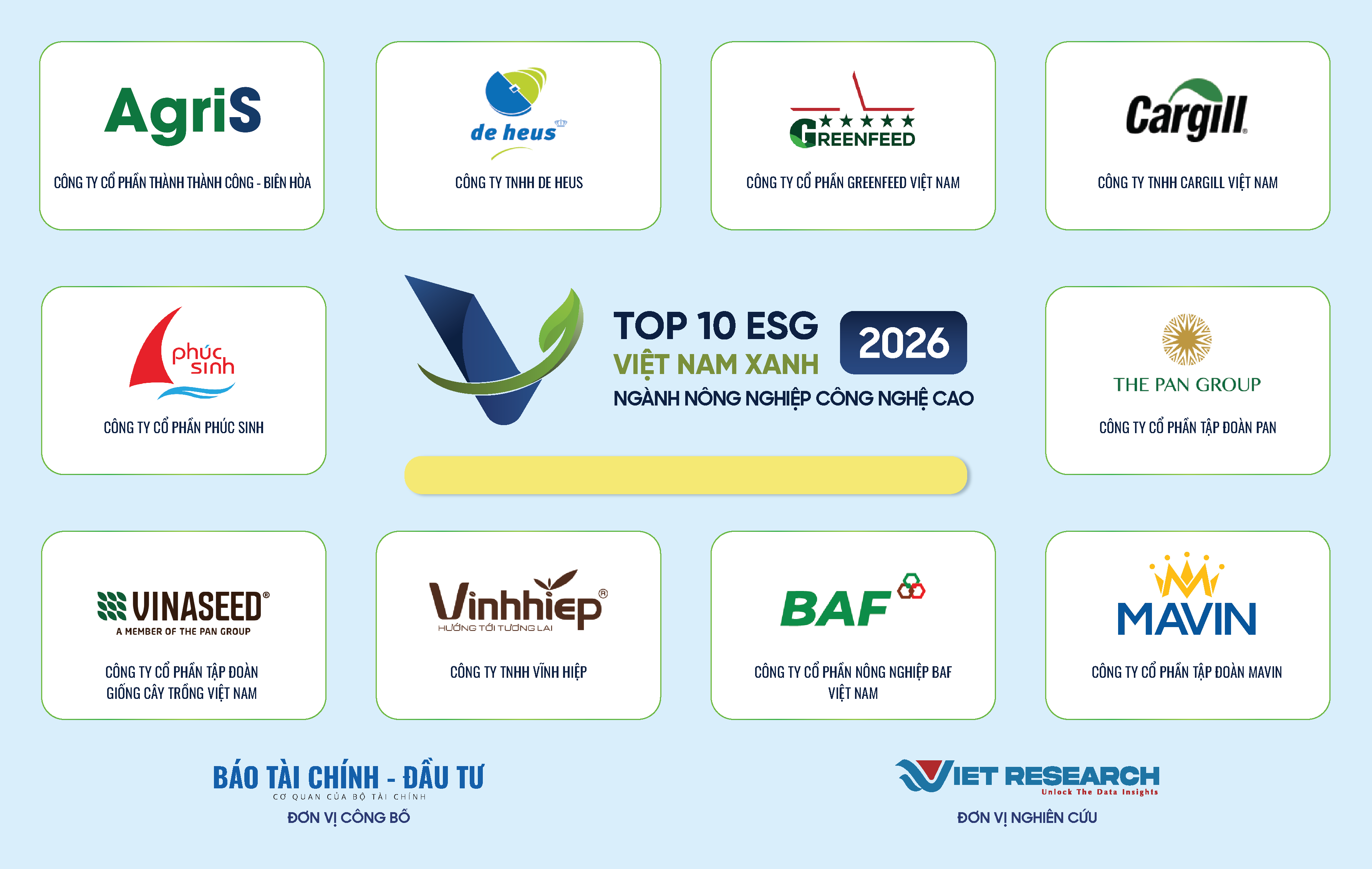 CÔNG BỐ TOP 10 DOANH NGHIỆP ESG VIỆT NAM XANH 2026 – NGÀNH NÔNG NGHIỆP CÔNG NGHỆ CAO